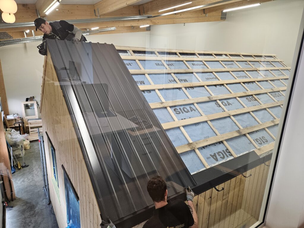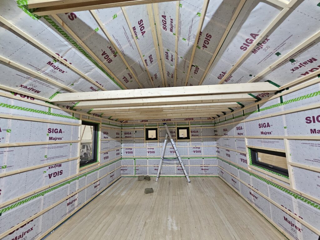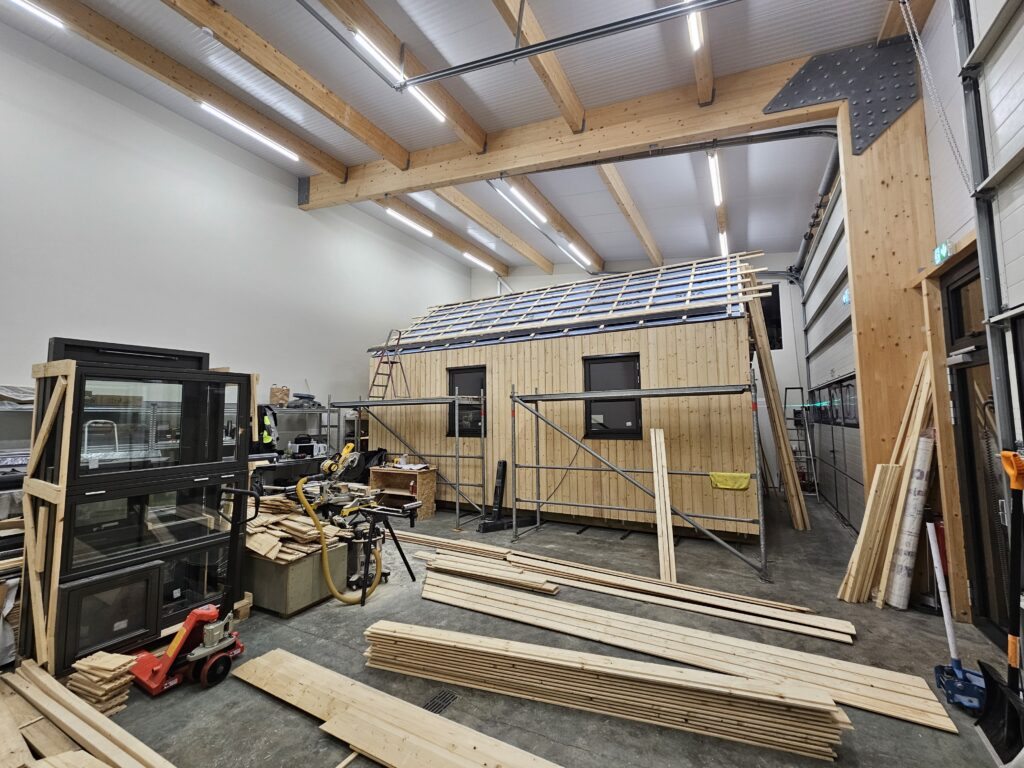 Húsið var reist við bestu aðstæður inni í vinnslusal okkar, veturinn 2024/2025. Uppsetningaraðilar voru samstarfsaðilar okkar til margra ára og hafa mjög góða reynslu og þekkingu á okkar húsum.