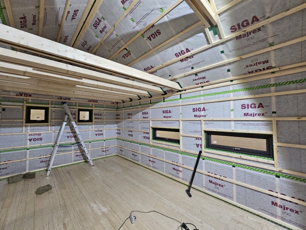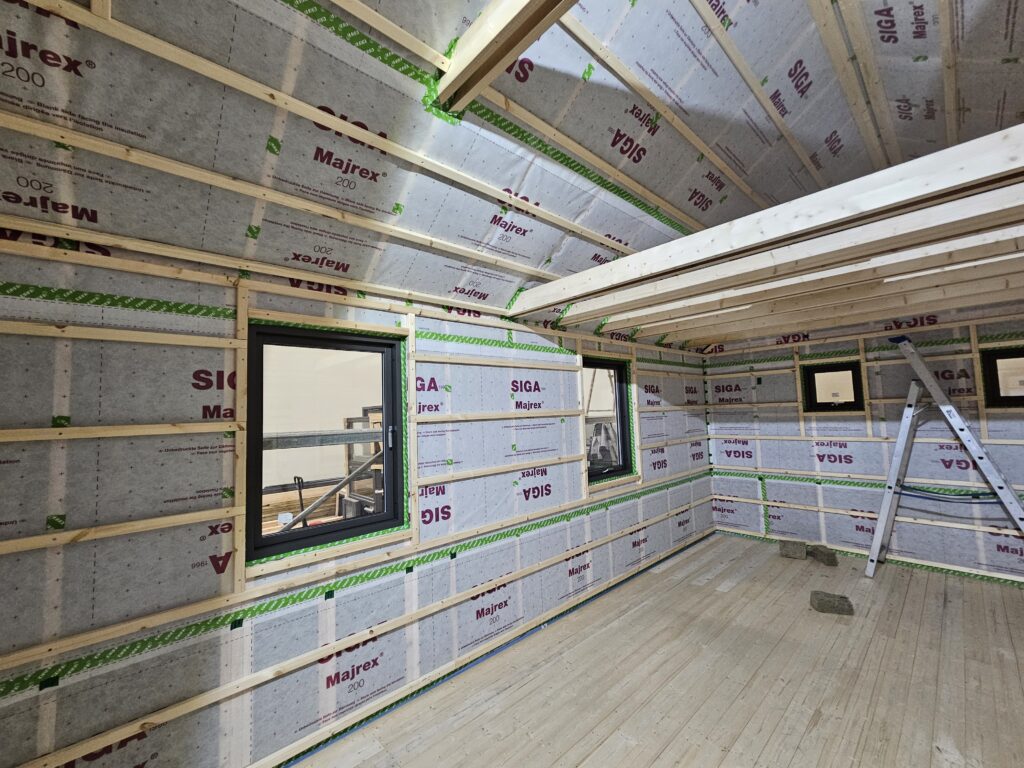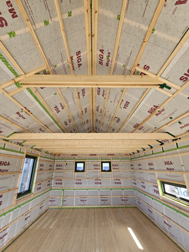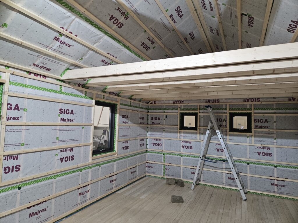 - Húsið er fullbúið að utan. Að innan er það að fullu einangrað ásamt rakasperru og lagagrind.